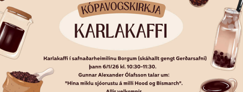 Karlakaffi 6/1/26 kl. 10:30-11:30 í safnaðarheimilinu Borgum