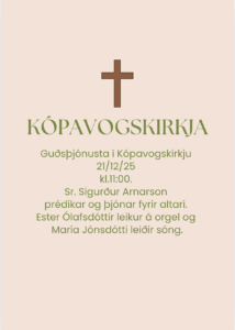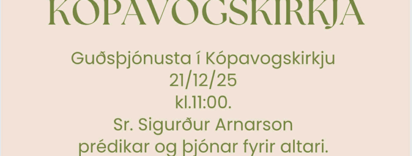 Guðaþjónusta í Kópavogskirkju kl. 11:00 þann 21. desember 2025desember 20, 2025 - 10:55 f.h.