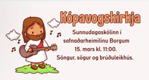 Kópavogskirkja/Sunnudagaskóli í safnaðarheimilinu Borgum 15/3/26 kl.11:00