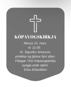 Messa í Kópavogskirkju 15/3/26 kl.11:00mars 12, 2026 - 6:08 e.h.