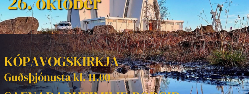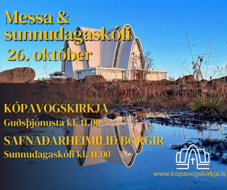 Messa með altarisgöngu verður við Kópavogskirkju sunnudaginn 26. október kl. 11.00. Sr. Grétar Halldór Gunnarsson prédikar og þjónar fyrir altari. Kór Kópavogskirkju syngur og Ester Ólafsdóttir leiðir söng. Á sama tíma verður sunnudagaskólinn í kapellu safnaðarheimilis Kópavogskirkju, leiddur af æskulýðsleiðtogum Kópavogskirkju.